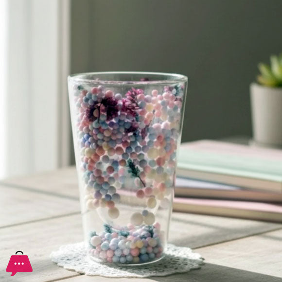 Double Wall Dried Flower Glass Elegant & Aesthetic Drinkware – 400ml