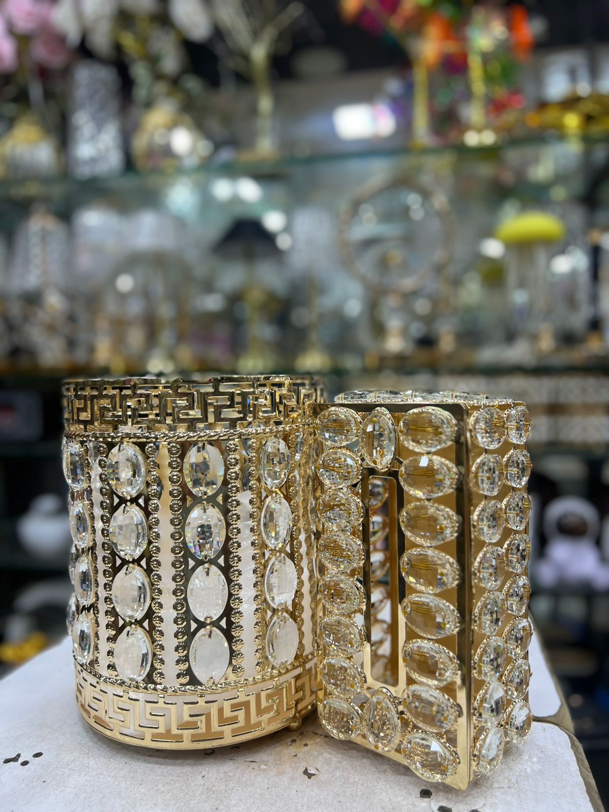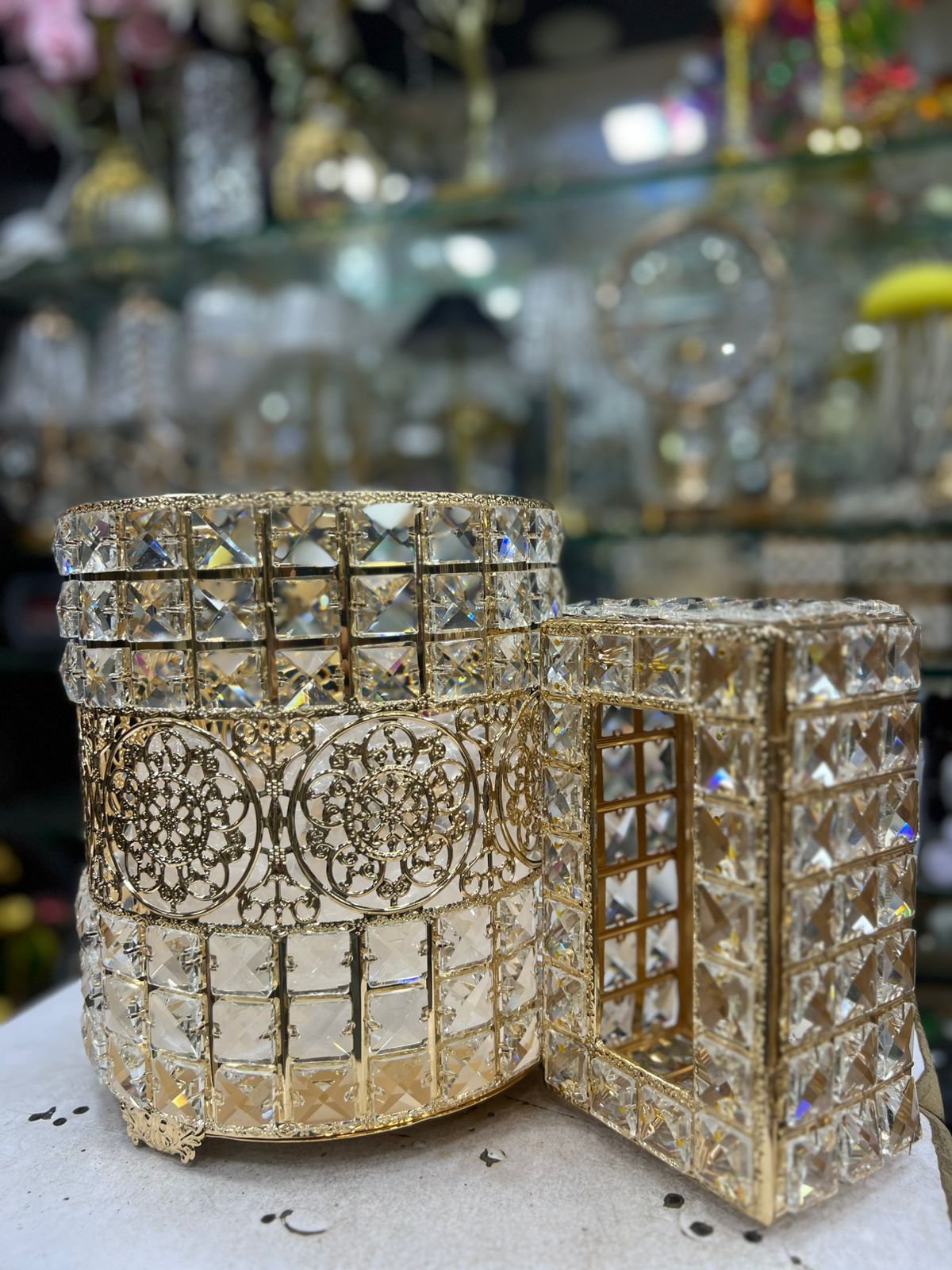 This crystal luxurious bin and tissue box container set will be look great in your living room.
