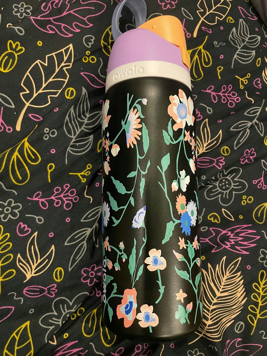Patented FreeSip spout with a built- in straw that lets you sip or swig