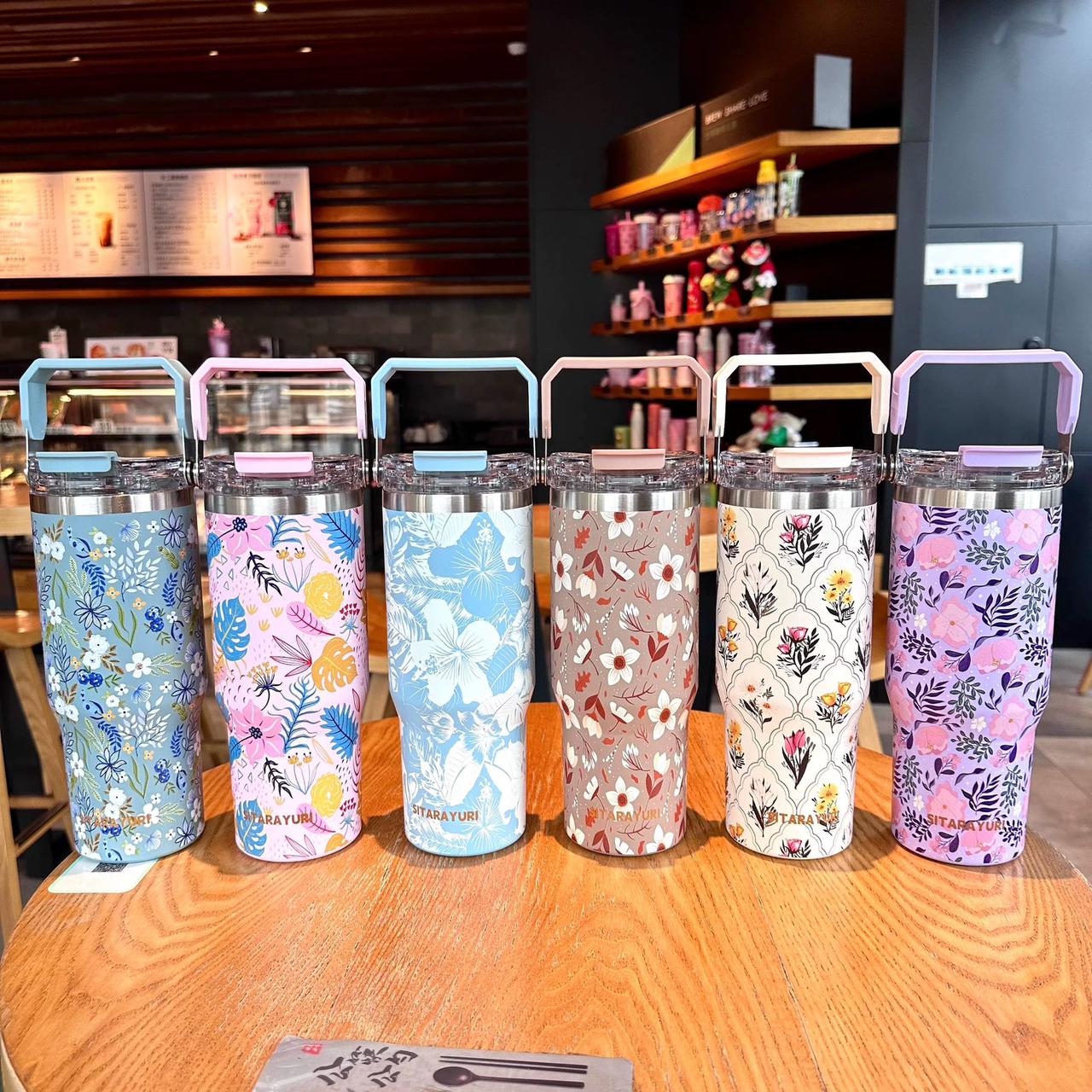 Sitarayuri Floral Stainless Steel 900ml (30oz )Tumbler with Handle & Straw – Leakproof & Travel Friendly